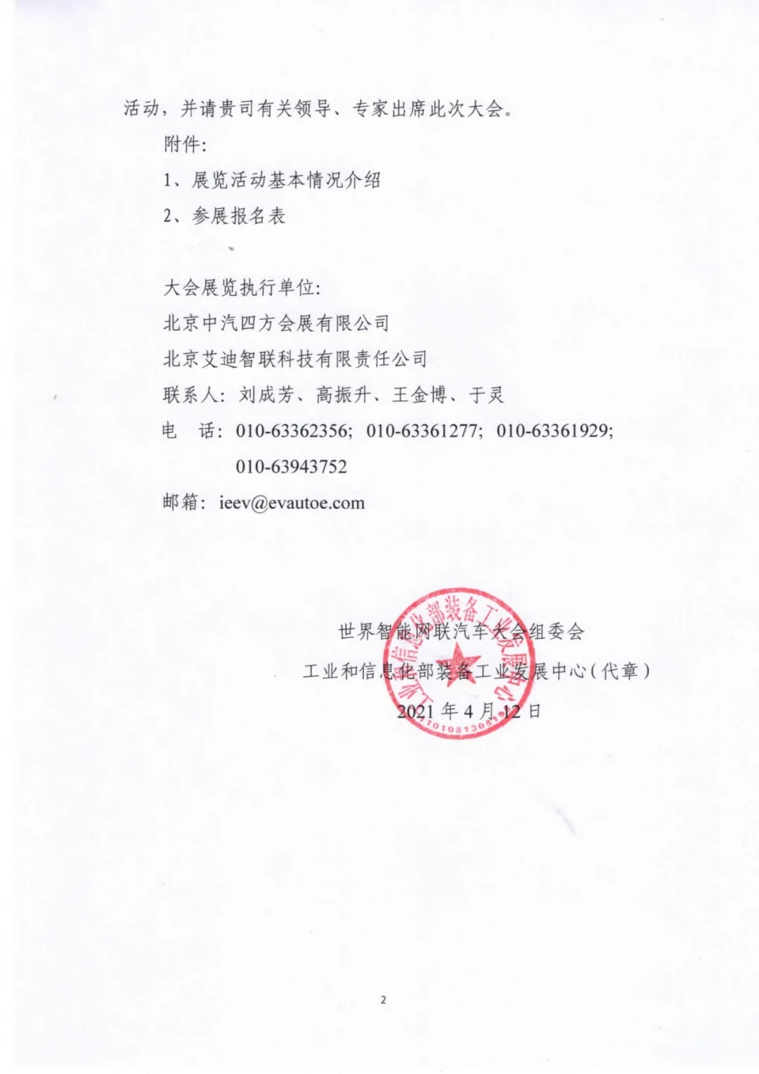 展覽執(zhí)行單位(北京中汽四方會(huì)展有限公司) 電話:010-63362356、63361277、63361929 郵箱:ieev@evautoe.com 地址:北京市豐臺(tái)區(qū)廣安路9號(hào)國投財(cái)富廣場1號(hào)樓511室(100073) 提交日期: 年 月 日 | |||